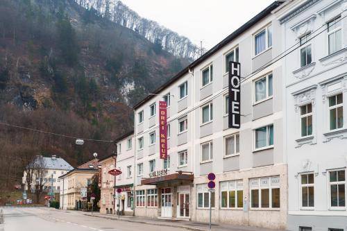 The three-star Hotel Drei Kreuz is a friendly 24-room hotel situated in eastern Schallmoos at the foot of Kapuzinerberg. Housed in an outdated building, the Drei Kreuz is surrounded by a hilly area filled with cheap restaurants and bland structures.