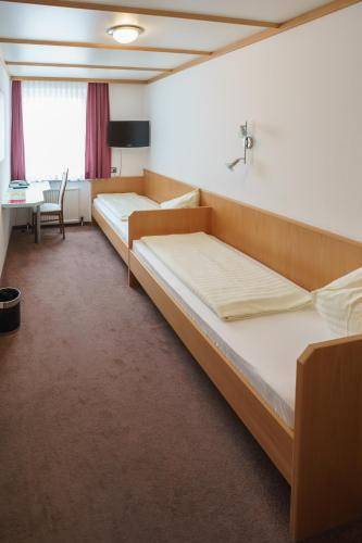 Rooms have simple furnishings, like wood headboards and desks, with some newer chairs and patterned curtains thrown in the mix. There's satellite TV, a coffeemaker and en suite bathrooms to give you more bang for your buck.