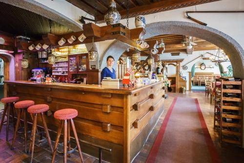One perk for traveling families is that kids get reduced rates. And triples have one double bed in the main quarters and a second, twin-sized bed either portioned off in a cubby-hole-like room or placed in the foyer. Two rooms have kitchenettes that you should request in advance. Get there early as reception is closed at night.