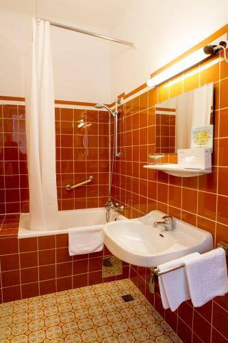 All rooms have satellite TV, and nearly all of the bathrooms have a tub and bidet. The rooms have views either of the street or the back parking lot. The windows are soundproofed, but since traffic is banned at night, there's not much noise to keep out.