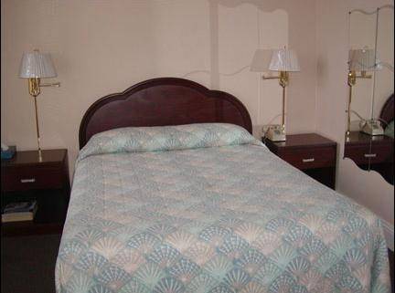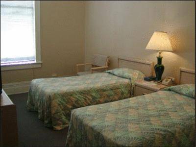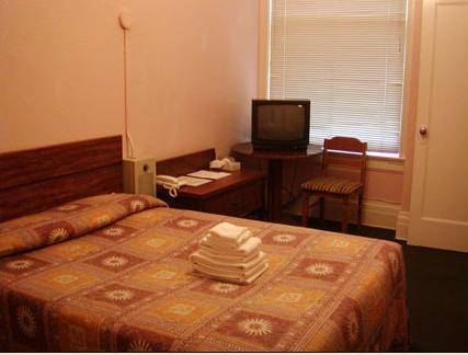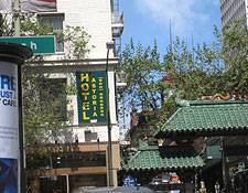 Guestrooms are small and standard. The gilded accents on the utilitarian furnishings give a touch of art-deco feel, but the flourishes end there. Bedspreads and curtains are a standard hotel print. Most rooms look onto busy Bush street, which makes them great for the eyes, but not so pleasant on the ears. Rooms are equipped with a TV, telephone and free Wi-Fi.