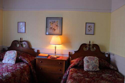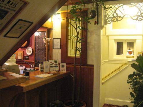 What the hotel lacks in amenities, it makes up in charm. Hallways and common areas are bright and homey. Stained-glass skylights let in loads of light, and the potted plants and ivy strung throughout add to the European vibe. A few inviting nooks offer plenty of books to peruse.