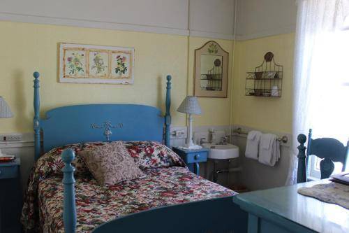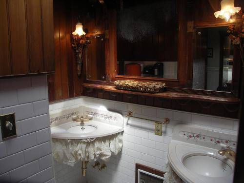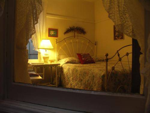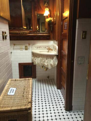All rooms share bathrooms, which are dated but spotless, with stall showers or claw-foot tubs and separate toilets. With their black-and-white tiled floors, corner sinks (some with floral tiles), pull-chain toilets and wooden shelves with potted plants, these are some of the loveliest shared baths we’ve seen. Most rooms also have small sinks.