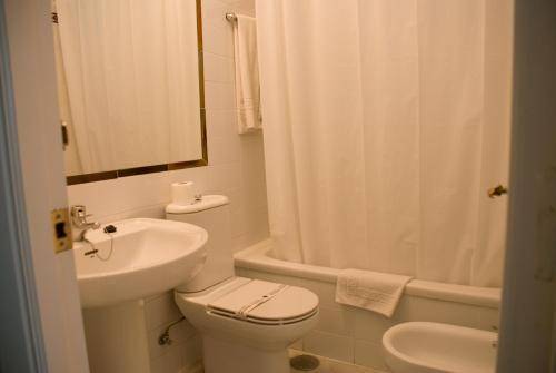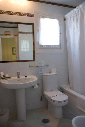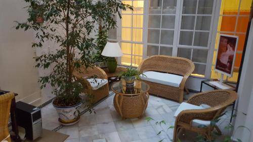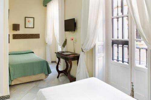 The Abril’s 20 guestrooms have undergone renovations in recent years and now sport fabric headboards, wicker furnishings, and bold tones of red, yellow, and teal. Guests will also enjoy air conditioning, a telephone and flat-screen TV. Some rooms have balconies and windows facing the street, although the quieter rooms face an interior patio. The clean private bathrooms are outfitted with shower/tub combos and decorated in white with vibrant tiles.