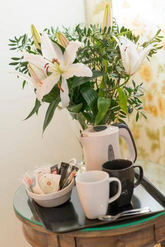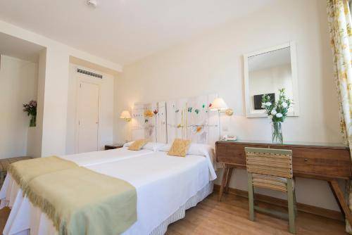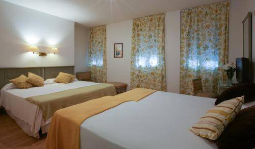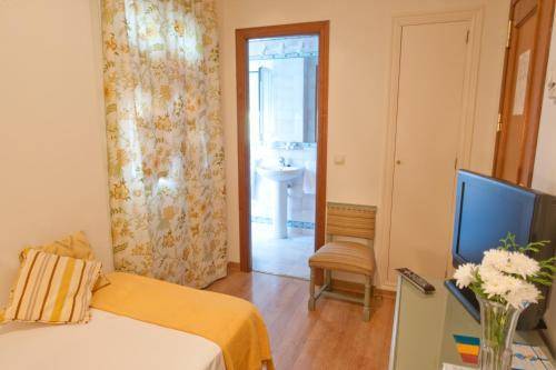 The Alcántara’s 21 rooms have a homey feel, with parquet floors, floral curtains and colorful striped throw pillows. All rooms are equipped with air conditioning, a flat-screen TV, telephone and free Wi-Fi. The spotless private bathrooms tiled in white tile, with blue trim outlining the mirrors and ceilings.