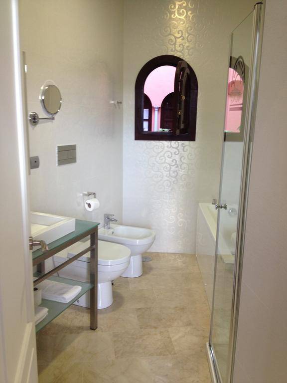 All bathrooms are private and boast hydromassage shower heads. Though we saw countless tiled walls throughout Seville, the patterns here were truly unique.