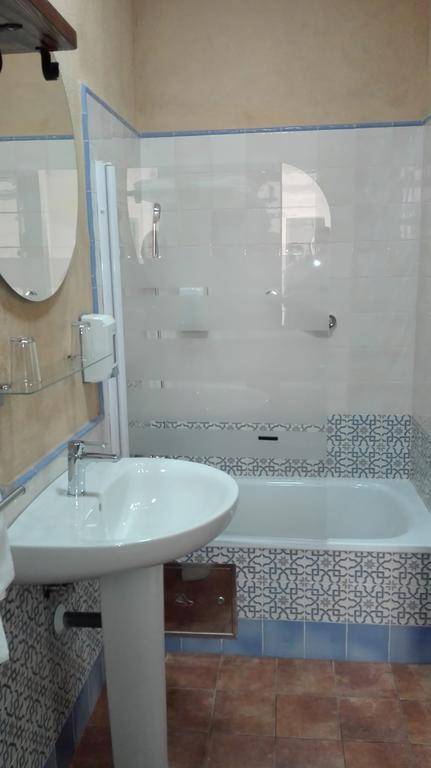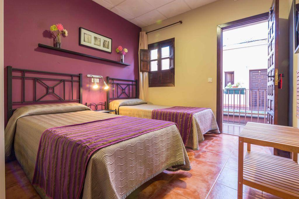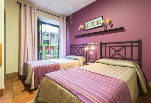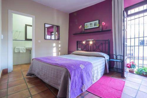 The hotel’s 28 guestrooms are decorated with traditional Andalusian tiles and violet- or chestnut-hued accent walls. Dark wooden window shutters keep rooms cool, and air conditioning, a flat-screen TV and free Wi-Fi are standard throughout. Some rooms face El Patio de las Cruces.