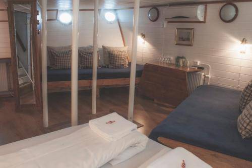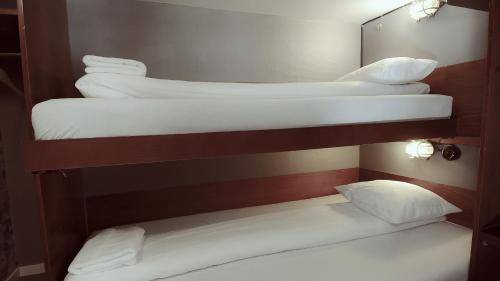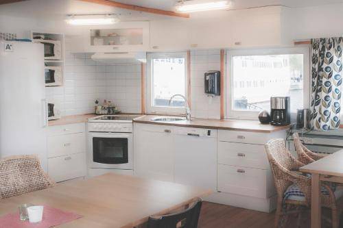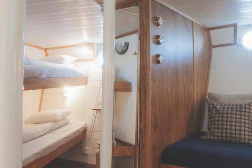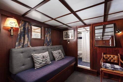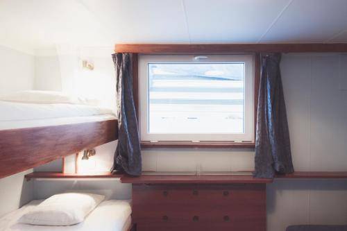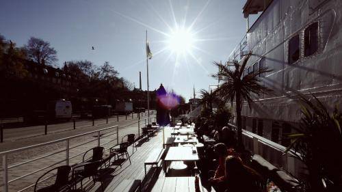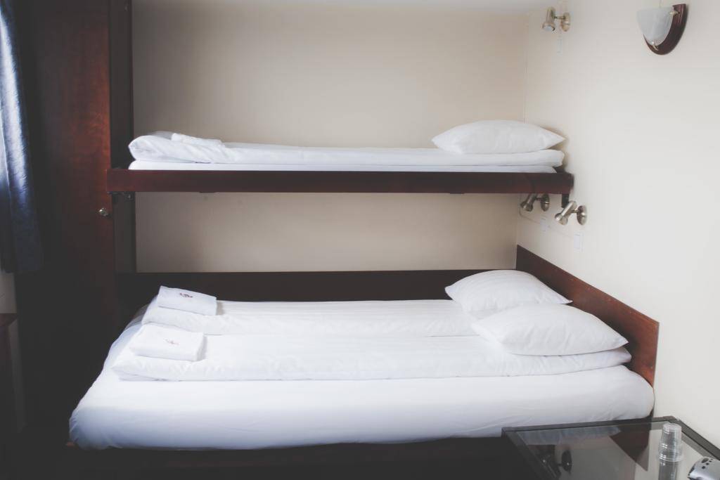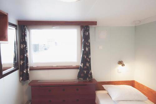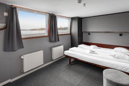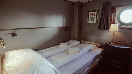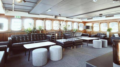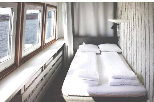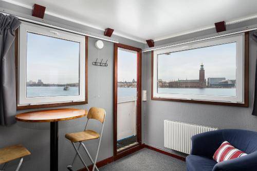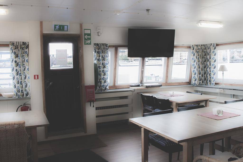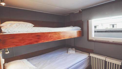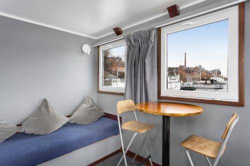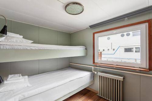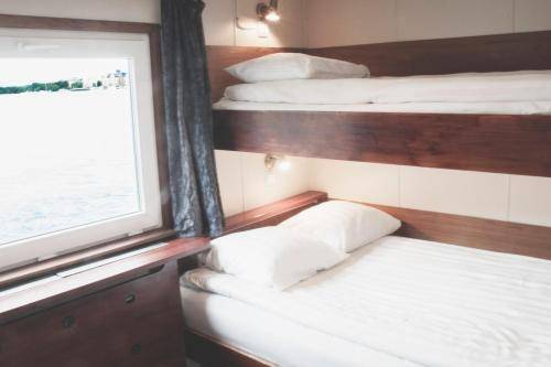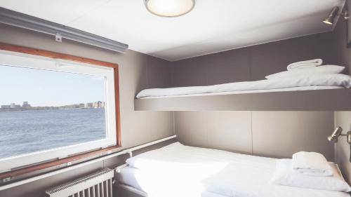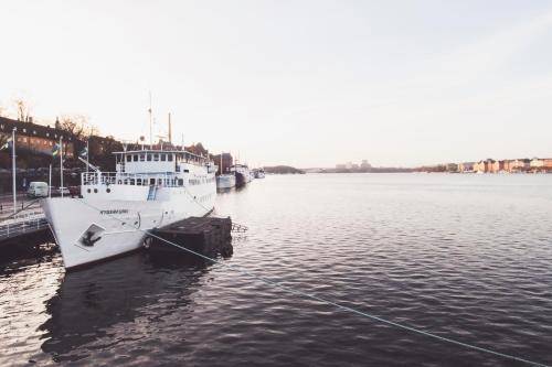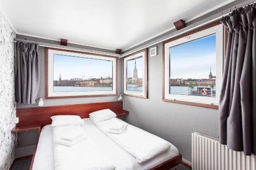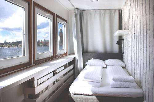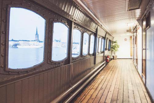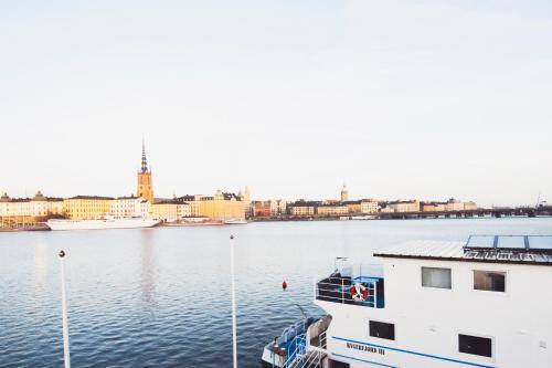 The 65-room M/S Rygerfjord, one of the larger boat-hotels in Stockholm, is a white three-decker serving as both a hostel and a hotel. Built in Norway in 1950, this ship has been permanently docked on Södermälarstrand since 1995. If you're looking for a real nautical experience or refined, yacht-like ambience, then head elsewhere. But if you want a simple, affordable place to sleep and float, then give the Rygerfjord a chance.