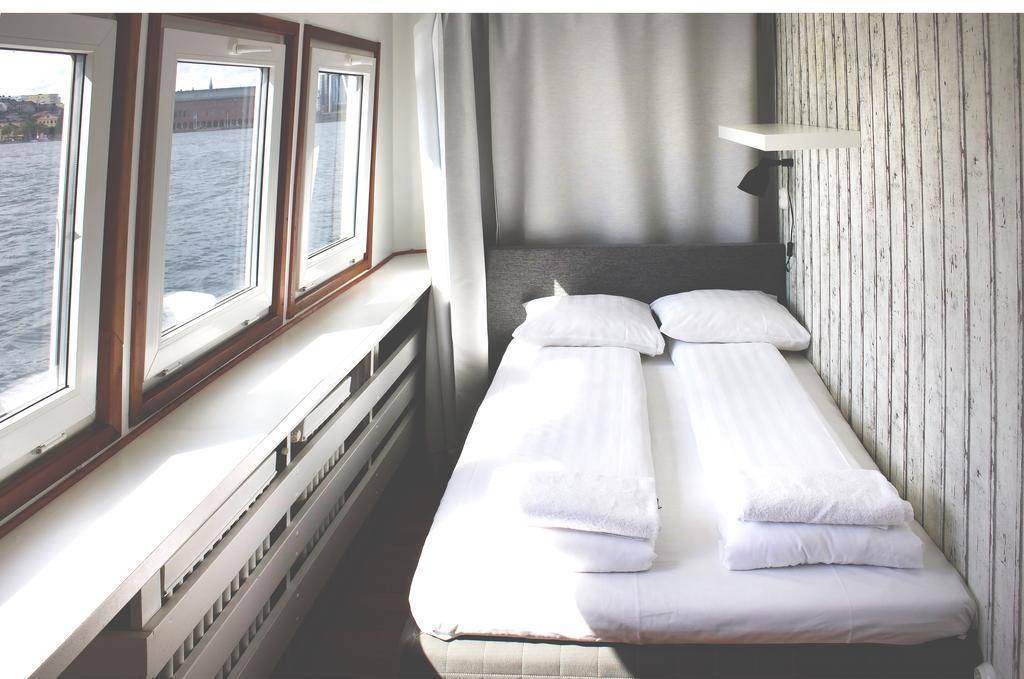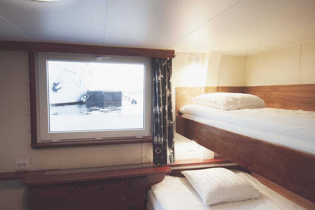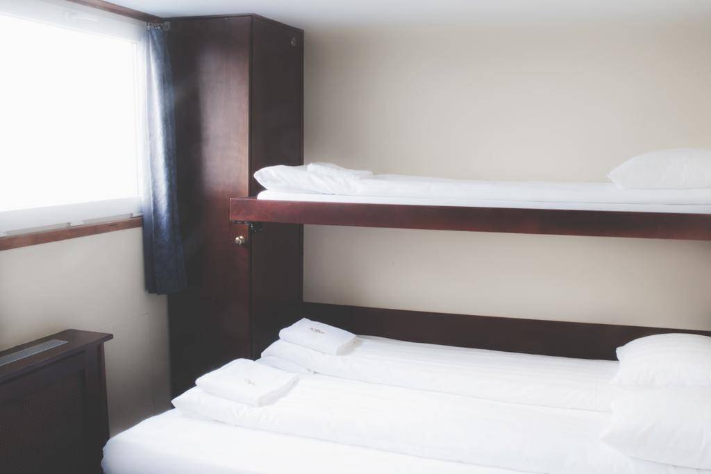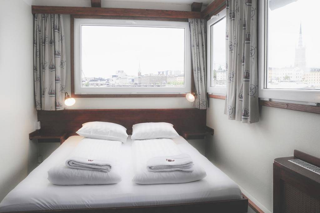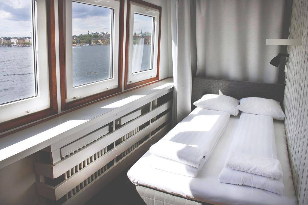 There isn't much to the cabins: just plain walls, striped bedding, and, well, that's pretty much it. Standard and Captain's cabins have private bathrooms, while budget cabins and the "hostel" rooms–which sleep two to 12 people (sheets and towels are SEK 60)—share facilities.