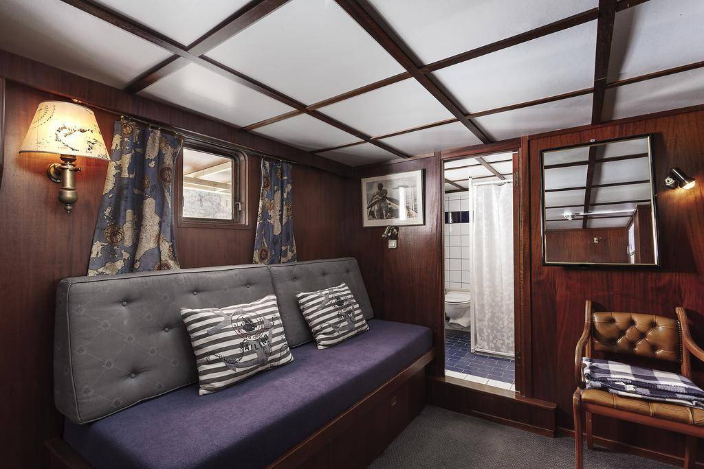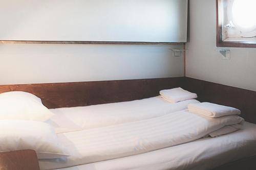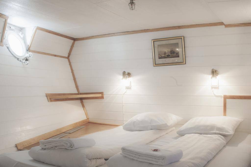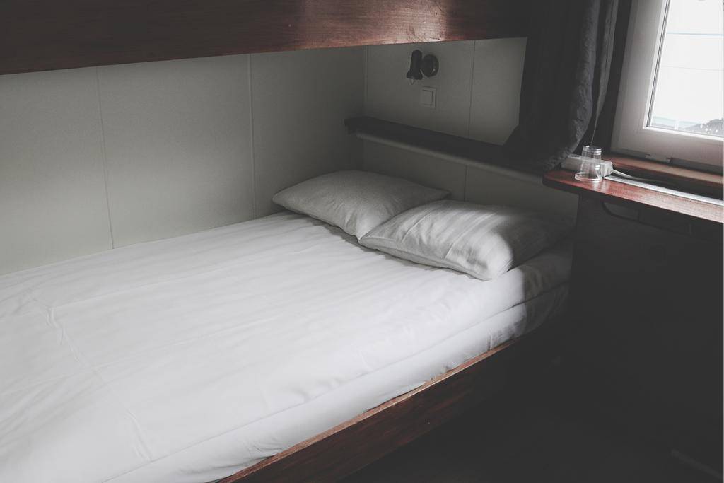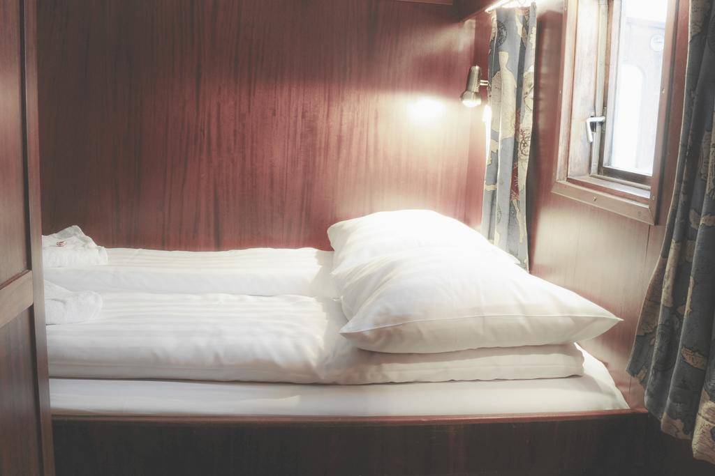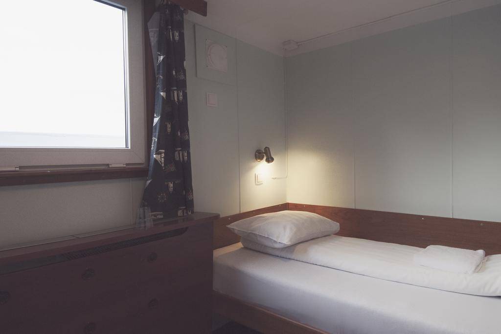 There isn't much to the cabins: just plain walls, striped bedding, and, well, that's pretty much it. Standard and Captain's cabins have private bathrooms, while budget cabins and the "hostel" rooms–which sleep two to 12 people (sheets and towels are SEK 60)—share facilities.