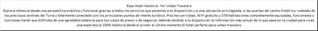 About this listing: EuroCheapo's editors have researched the Expo Hotel Valencia and have included it in our Valencia guide based on its location, room rates, services offered, and user reviews.