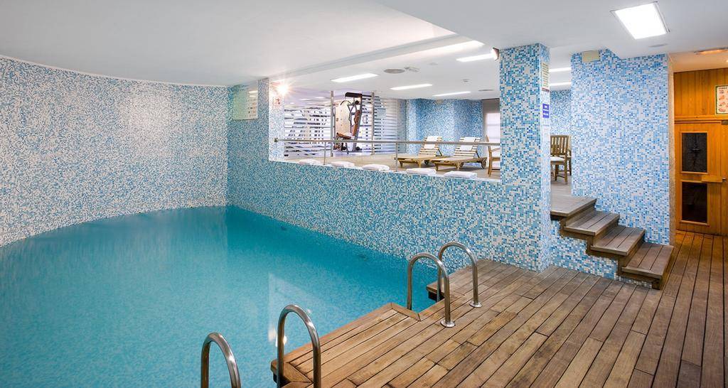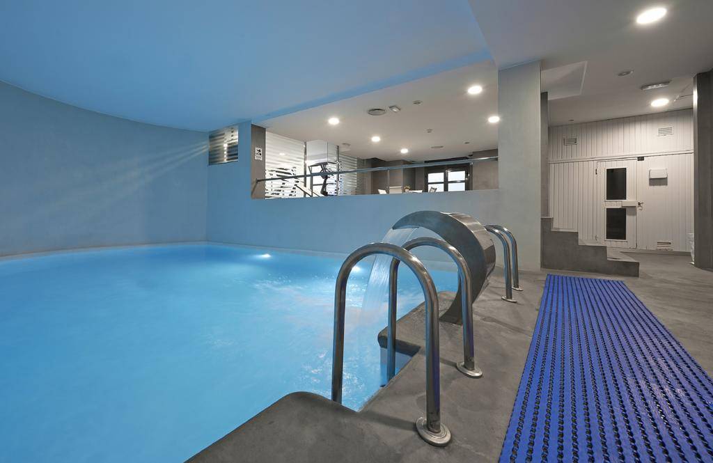 A gym, sauna, indoor swimming pool, and game room are located on-site. Wi-Fi is free in public areas of the hotel.