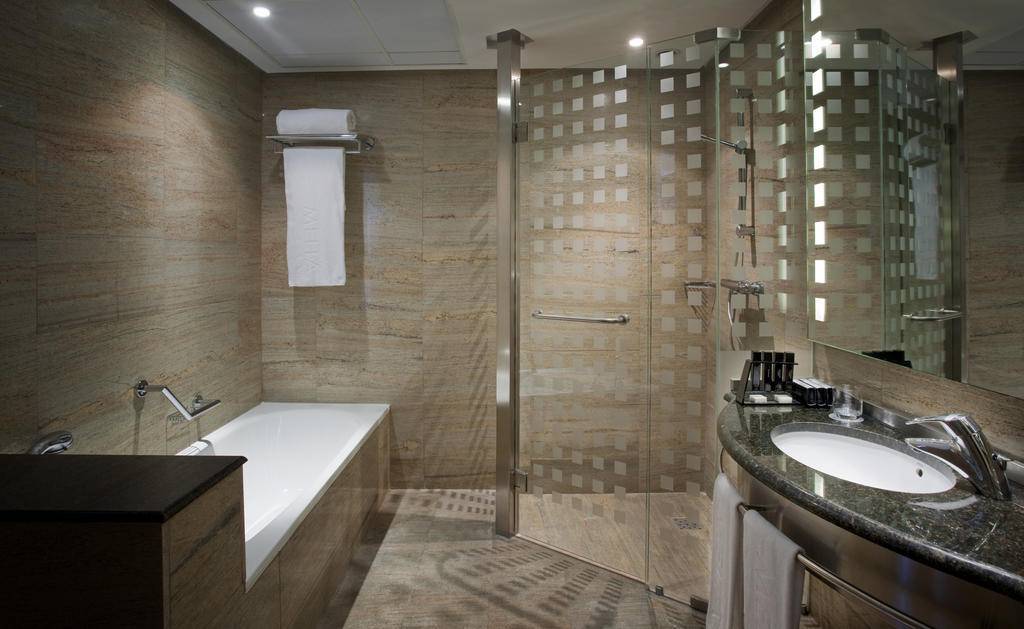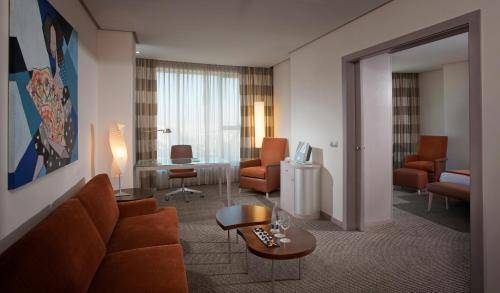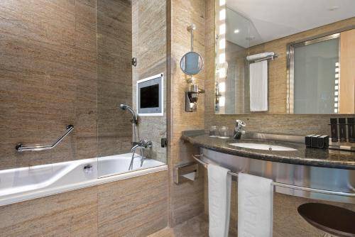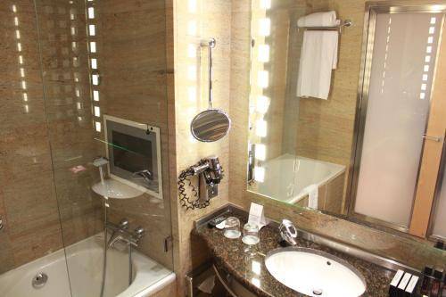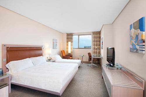 The 151 rooms are furnished with carpeted floors and equipped with air conditioning, a TV, telephone, tea and coffee maker, radio and minibar. The private bathroom has a shower or tub, hair dryer and toiletries.