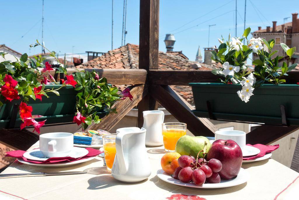 Guests can take in the views of San Polo from the small rooftop terrace, tucked away high above the third-floor breakfast room (with some nice views of its own!). A breakfast buffet, with cheeses and meat, is sometimes included in the room rate — check when booking. Wi-Fi is free throughout the hotel.
