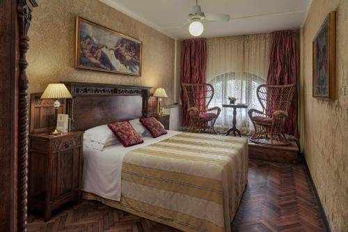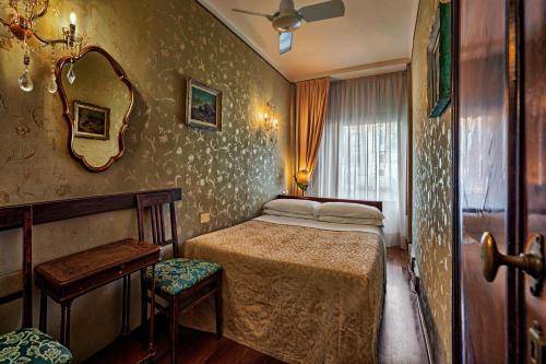 The hotel’s nine rooms are tastefully decorated in pretty, rich colors, with coordinating fabric wallpaper and bed coverings. Beds, tables, and dressers are lovely antique pieces, and old prints hang on the wall (mostly copies of pieces in the Accademia Gallery, next door). But the big draw here are the views outside your windows.