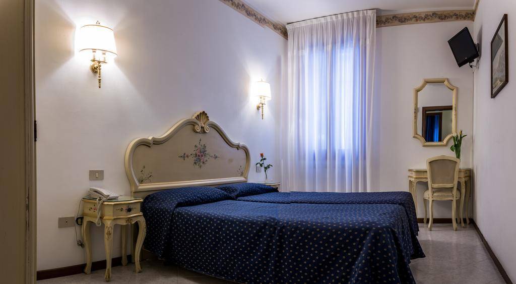 The Guerrini’s 28 guest rooms don’t rank high for their charm but they are clean and equipped with a phone, air-conditioning, TV and free Wi-Fi. Three rooms look onto the picturesque Campo Santo Geremia, while the rest open to the quiet side street.