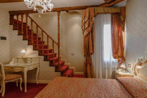 A continental breakfast is included in the room rate. Note that the Locanda Al Leon has rather steep stairs and, like most small hotels in Venice, no elevator.