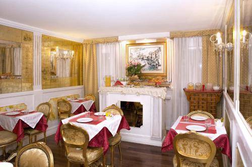 The three-star Hotel Noemi provides 16 smallish rooms with full-blown Venetian style. We’re talking about marble and parquet floors, colorful damask walls, gold bedspreads and other “gilt-y” pleasures. All rooms are equipped with air conditioning, a flat-screen TV (in a gold frame, no less), and telephone.