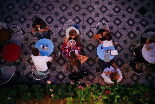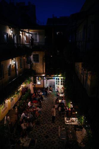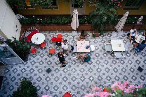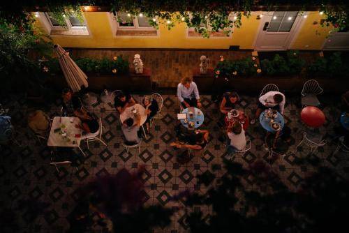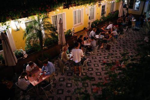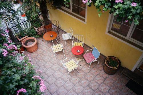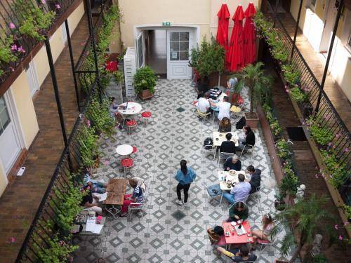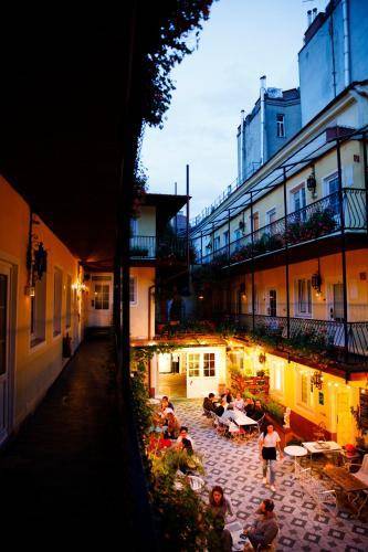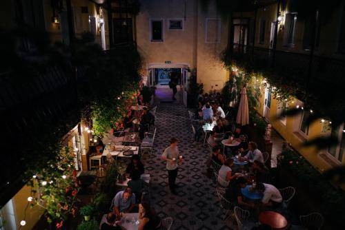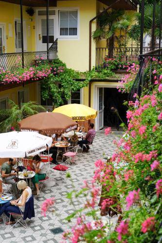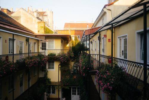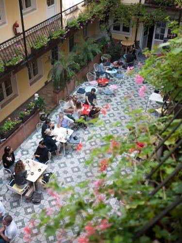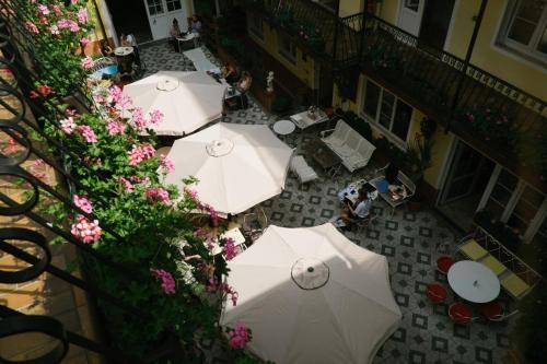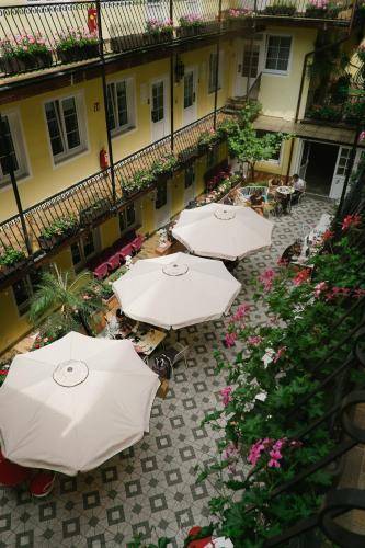 The 30-room hotel has a wealth of lovely details. Outside, the two-story 18th-century façade bursts with flowers. There's even more plant life in the spacious inner courtyard, where guests can eat breakfast in the summer. Flowers dangle from wrought iron trellises, and the interior is painted a perfect shade of Austro-Hungarian yellow.