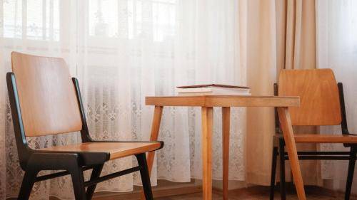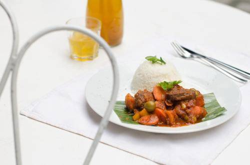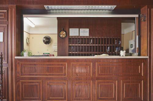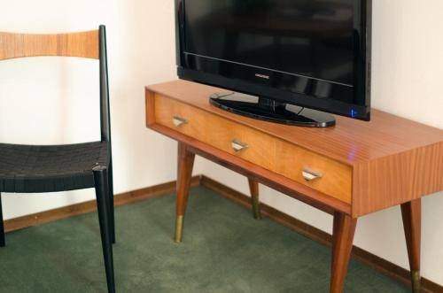 Unfortunately, the rooms are not decorated with quite the same level of care. They're dark, average-sized spaces with big wooden armoires. Bathrooms are clean but not any brighter, and feature colored tiles in hues like avocado and mustard. Apartment-style rooms with kitchenettes are a bit more modern.