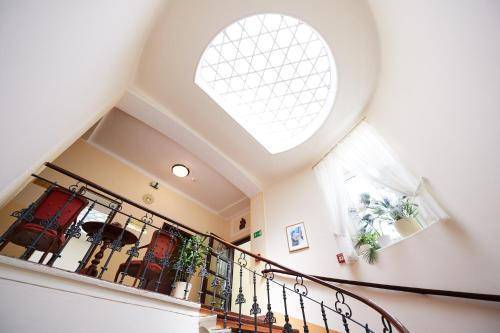 A grand spiral staircase leads up to 46 quiet, airy rooms awash in Viennese yellows and reds. Rooms with a shared bathroom are an exceptional deal for the neighborhood. Bathtubs have been shoehorned into some bathrooms, despite their cramped nature.