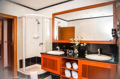 The 12 rooms are hardly shabby (soundproofed windows keep the noise levels down), with minibars, air-conditioning, and satellite TV. Décor here is mostly chain-hotel classic. Dark green carpet, light balsa wood nightstands and desks, and red comforters are the norm. Some bathrooms have impressive checkerboard tile jobs. Deluxe suites are available.
