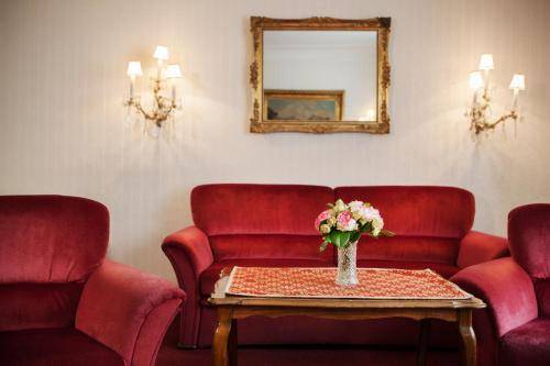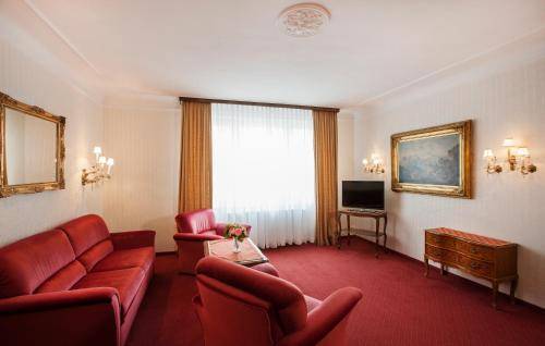 The décor, awash in deep reds, consists of divans, large wooden beds, chandeliers, and turn-of-the-century wallpaper. All that excess comes at the price of space. Rooms are a little tight, though the singles aren't as cramped as they tend to be at other properties at this price point. The bathrooms, all of which have bathtubs, are huge in comparison to the bedrooms.