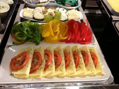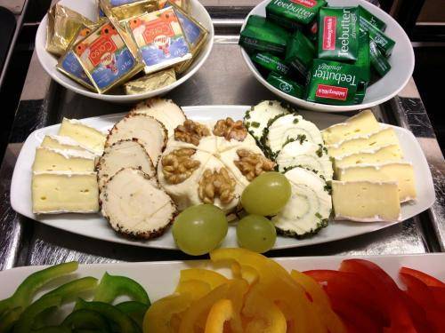 Décor, though crisp and minimalistic, does hint at “bachelor pad.” Heavy floor-to-ceiling curtains come in a black and gold pattern and are off-set by institutional headboards in dark metallic and faux suede room accents. A few spaces are overpowered by chintzy angel and fairy murals, but many still offer striking views of Innere Stadt rooftops. Bathrooms are fresh and cleanly-lined if painted in an ugly orange-red hue.